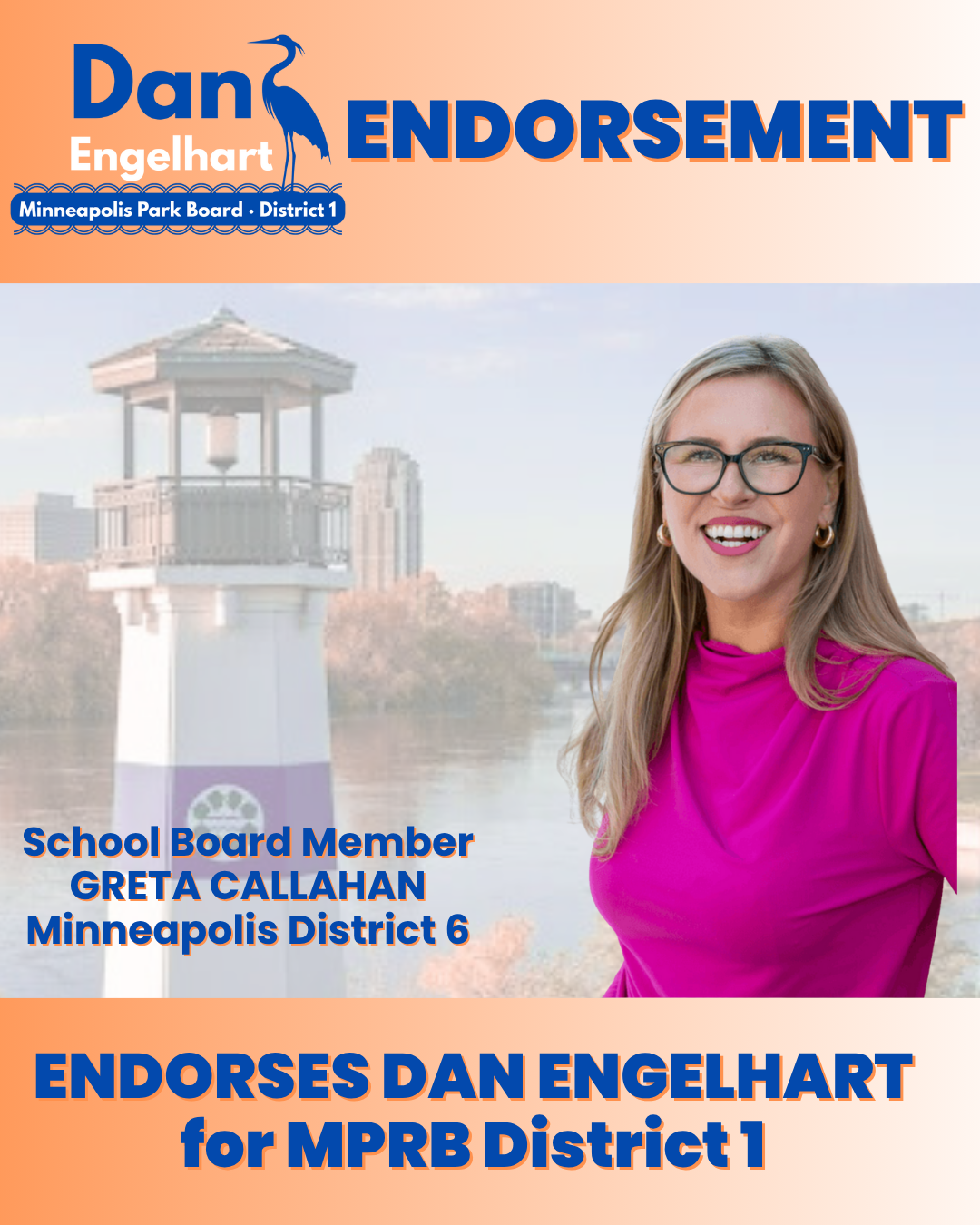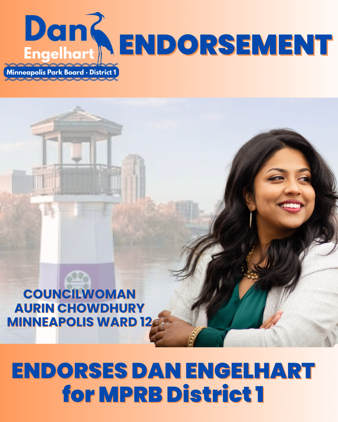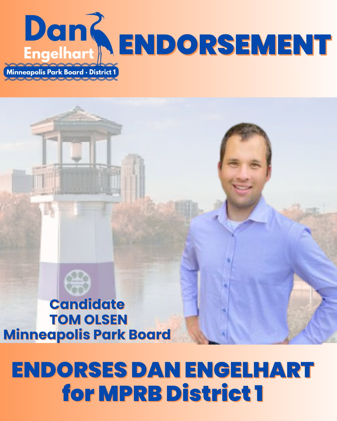 I’m excited to endorse my friend Dan Engelhart for MPRB district 1, and I am so glad that he is running!