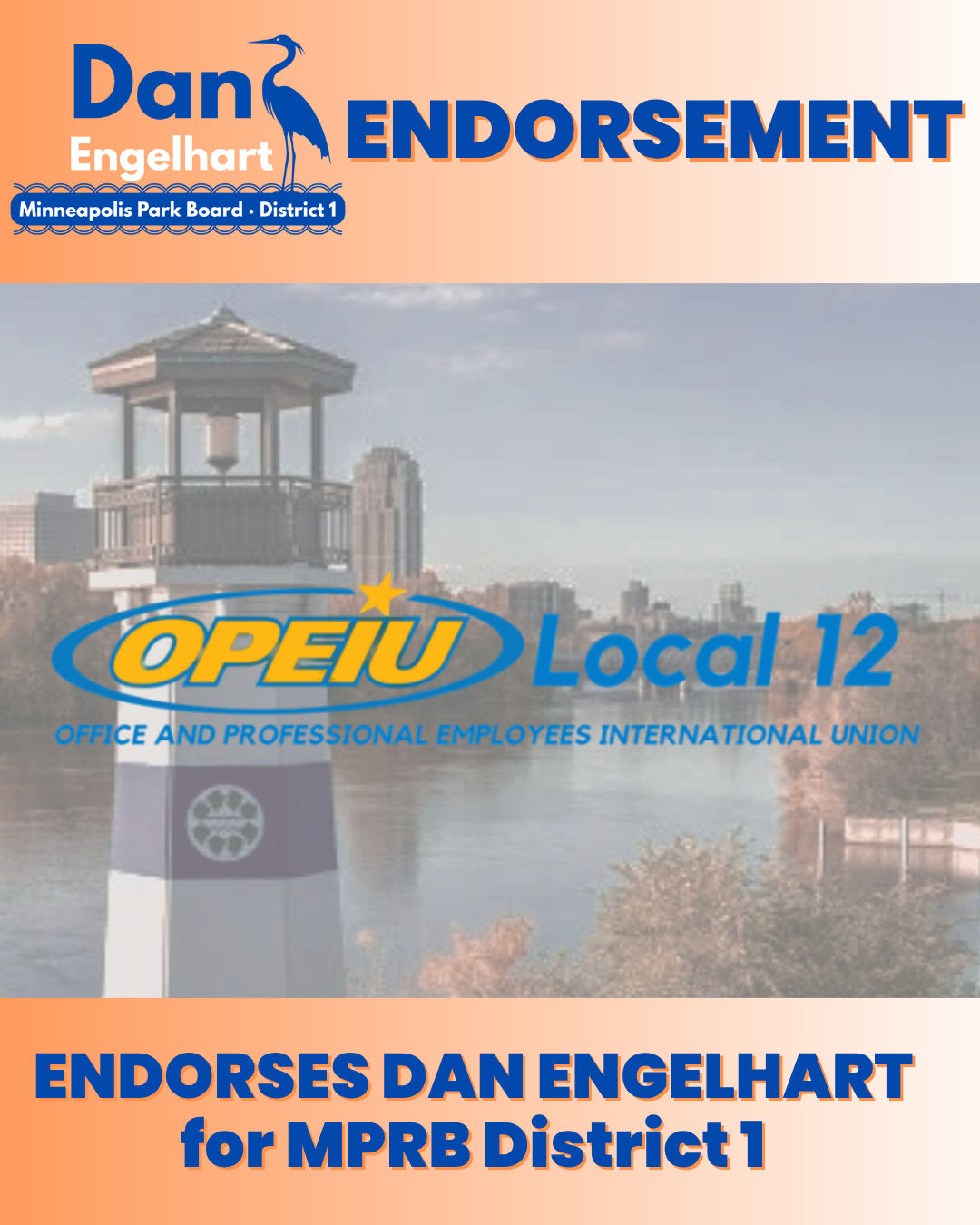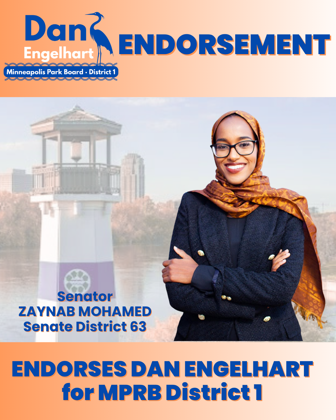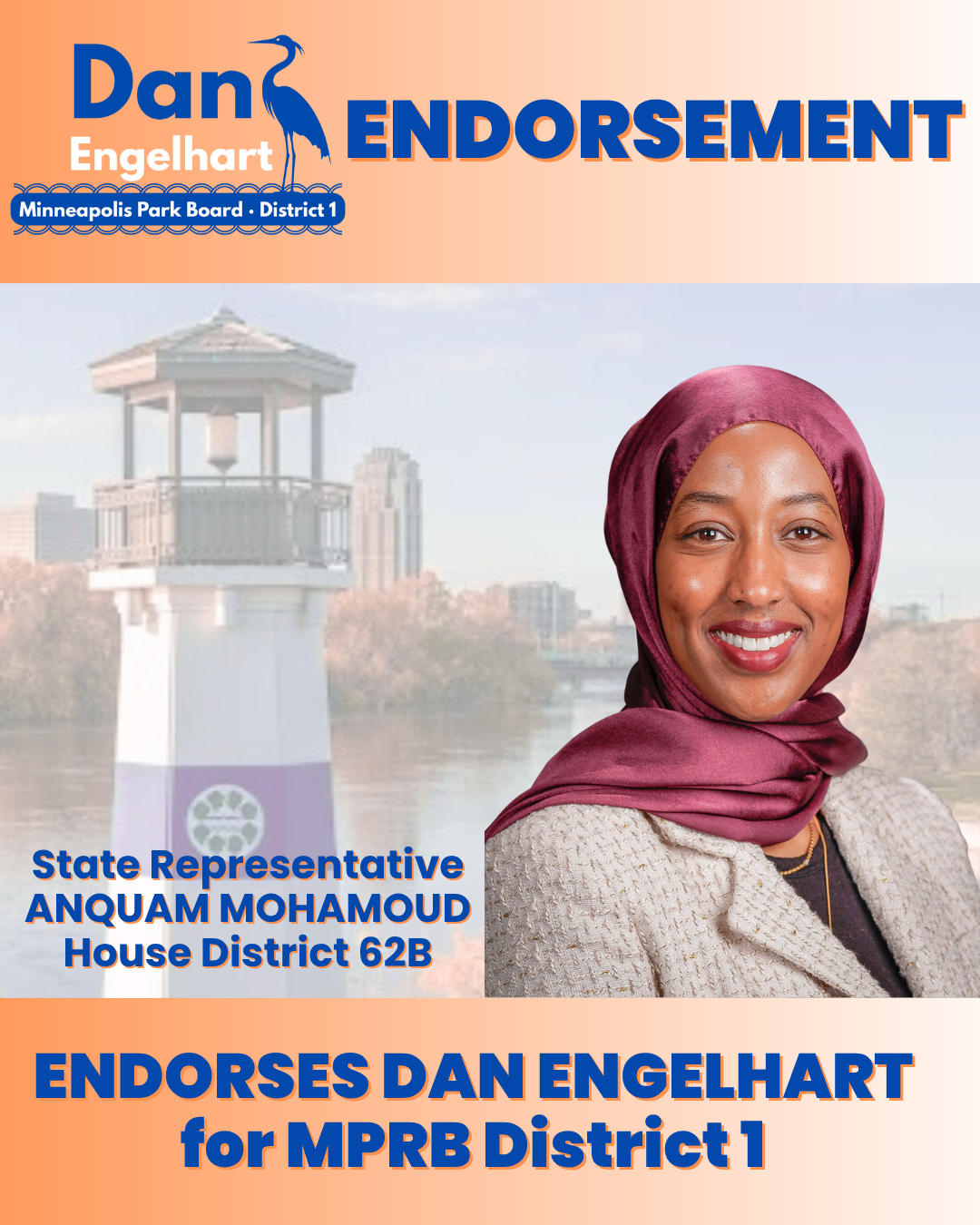 I’m excited to endorse my friend Dan Engelhart for MPRB district 1, and I am so glad that he is running!